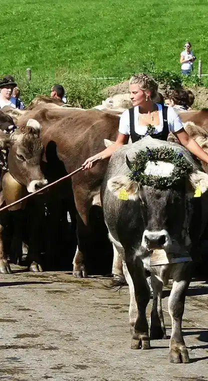 Im Herbst findet in Oberstdorf der traditionelle Almabtrieb statt. Rund 1.000 geschmückte Tiere werden von den Alpen ins Tal geführt. Blasmusik und Volksfeststimmung begleiten das Ereignis. Aufenthalt bis in den Nachmittag mit Besuch des Festzelts möglich.