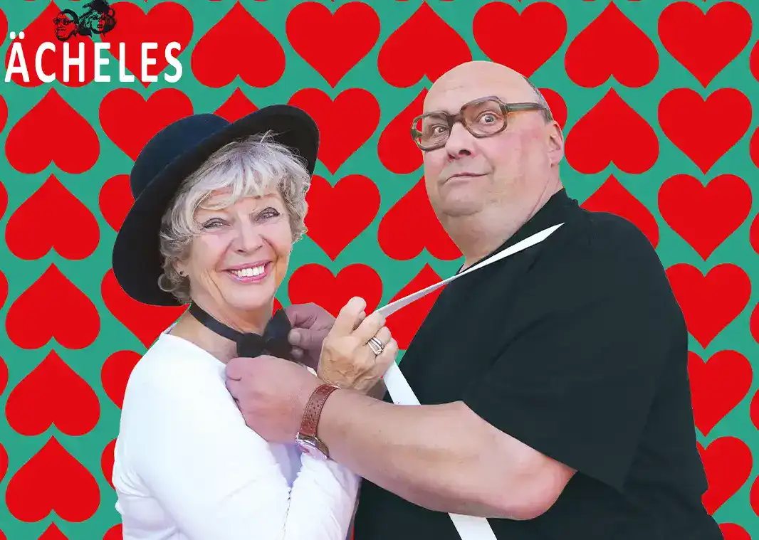 Heute erwartet Sie ein unterhaltsamer Ausflug mit dem schwäbischen Kult-Duo Käthe und Karl-Eugen Kächele. Nach einem herzhaften Mittagessen im Albstadel erleben Sie das Programm „20 Jahre Kächeles – und die Ehe hält“. Mit Humor, Situationskomik sowie Kaffee und Kuchen wird der Nachmittag zu einem echten Genuss. Freuen Sie sich auf beste Unterhaltung mit schwäbischem Charme.